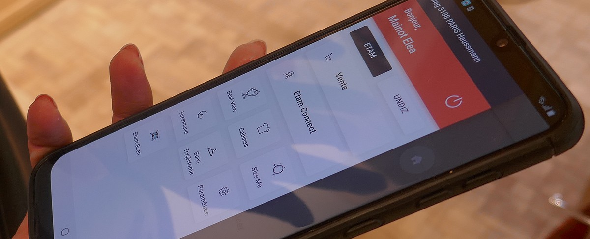 L’application mobile des vendeuses permet notamment de retrouver la taille d’une cliente entre les différents systèmes selon les pays et de suivre le service Try at home. Le service Try at home est une spécificité d’Etam.