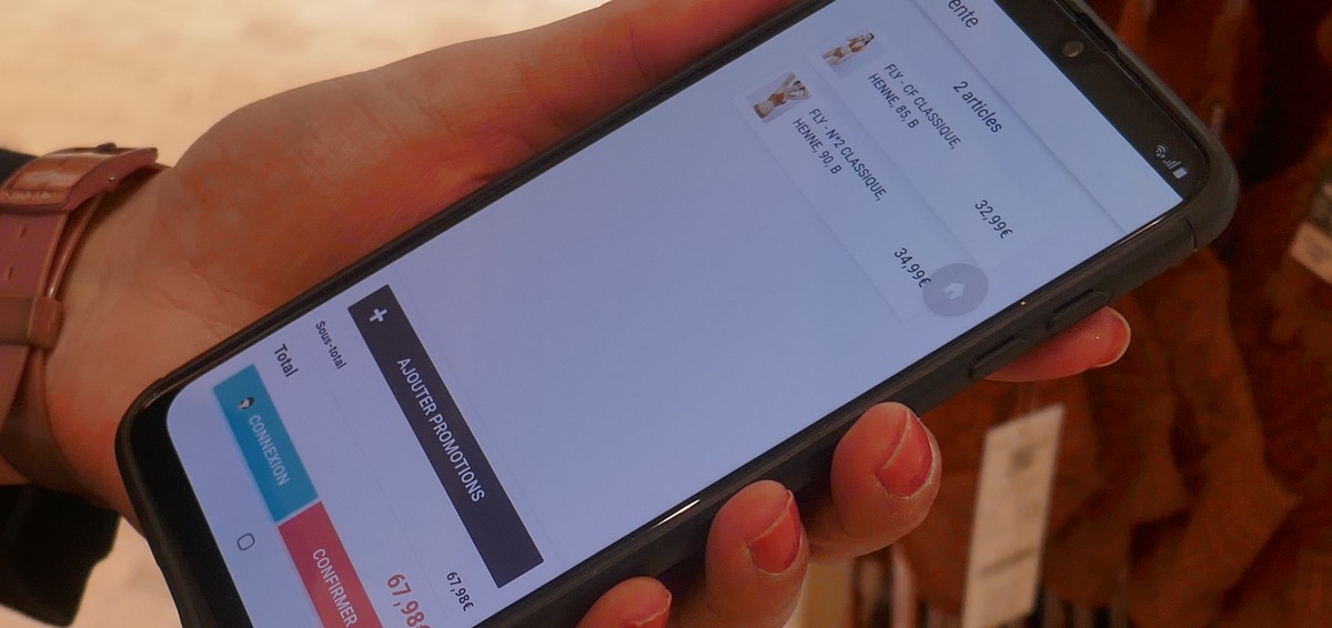 En effet, l’encaissement peut être réalisé auprès des vendeuses via leur smartphone où que l’on soit dans le magasin sans devoir faire la queue en caisse.