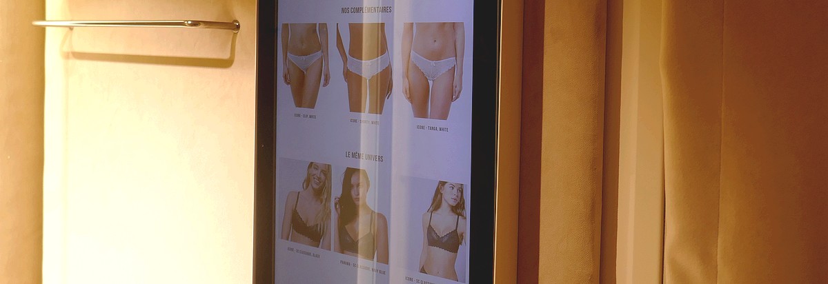 La technologie est mobilisée pour fluidifier l’expérience des clientes. Le magasin propose des cabines connectées – situées au sous sol – qui permettent de commander une autre taille ou un autre produit sans avoir à attendre une vendeuse ni à sortir de la cabine.
