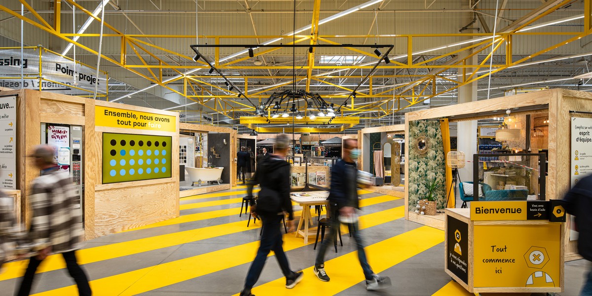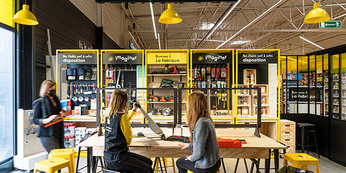 L’accueil du magasin est désormais un « point service » qui présente les services. Il s’agit du « click & collect », de la livraison à domicile, de la pose à domicile, des ateliers de bricolage, du coaching à domicile et de la location de véhicules. Un conseiller oriente le client selon son projet. Un espace « QG » propose aux clients un accompagnement personnalisé et omni-canal. On peut préparer un projet en 3D, disposer de conseils pour une consommation responsable, consulter des tables d’inspiration, des écrans de recherche, etc. Cela doit faciliter le parcours d’achat et le rendre efficace.