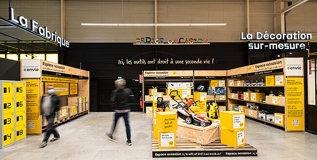 En réponse aux nouvelles attentes du consommateur, un espace « occasions » est co-construit avec l’Association ENVIE, une association qui travaille sur la seconde vie des produits. Cet espace propose aux clients d’apporter leurs outils qui ne fonctionnent plus. L’association les remet en état de marche, et ils sont revendus sous forme de produits d’occasion au sein même du magasin. En parallèle, l’association ENVIE emploie des personnes en marge de l’emploi, favorisant la réinsertion sociale. Ce partenariat permet à Bricorama de proposer un service inédit.