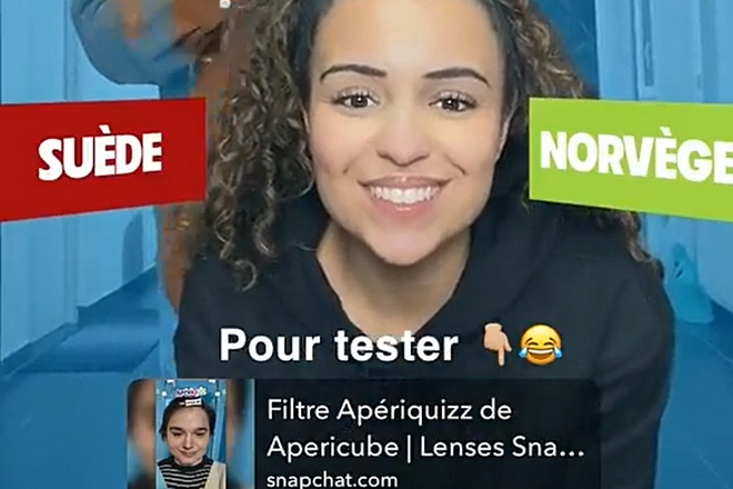 Avec Aperiquiz, Apéricube veut proposer une expérience associant l’humour, le jeu et la gourmandise. Cette activation sur Snapchat lui rend hommage. La Lens AR est accessible via le profil Snapchat officiel d’Apéricube (@apericube).