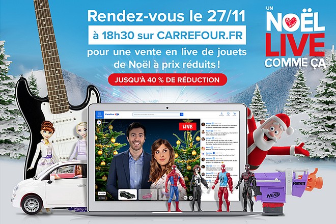 Carrefour effectuera 3 sessions de « live shopping » les 27 novembre, 2 décembre et 5 décembre à 18 h 30 autour de jouets proposés à prix exceptionnels, annonce le distributeur.