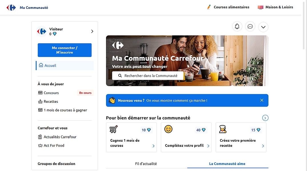 Carrefour veut progresser en écoutant ses clients. Sur la plateforme qu’il lance, les clients pourront échanger, partager leurs bons plans, tester des produits gratuitement, donner leurs avis et des suggestions, participer à des concours, etc,