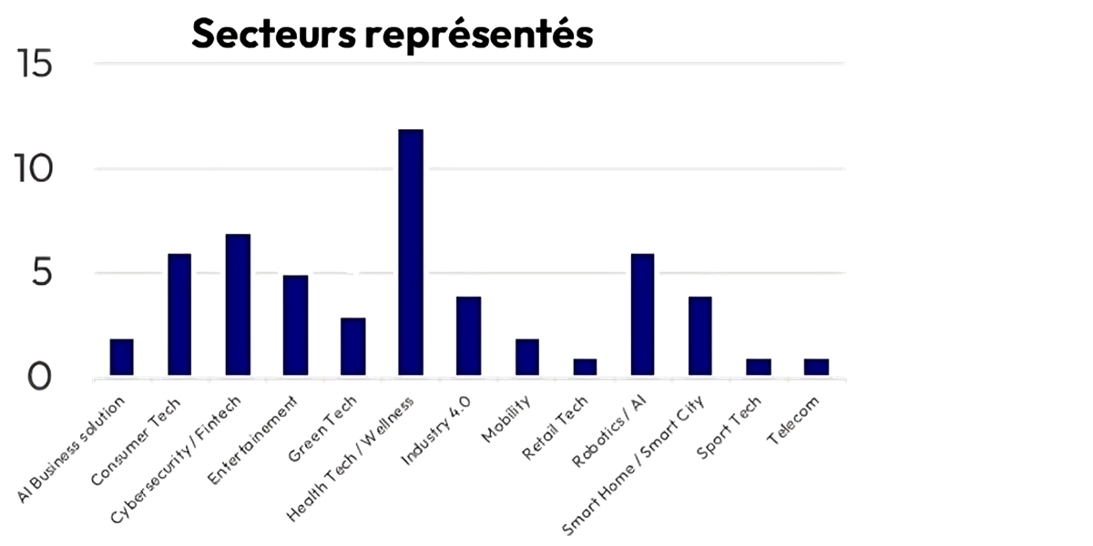Les priorités technologiques portent sur l’intelligence artificielle, la Health Tech, la mobilité et les solutions numériques — de la Consumer Tech en passant par la cyber sécurité et la smart city. Pour la visibilité des startups auprès des donneurs d’ordre, investisseurs et visiteurs, le Pavillon France de l’Eureka Park est organisé de manière sectorielle. La délégation française couvre les domaines de la santé, de la cyber sécurité, de l’intelligence artificielle et des technologies numériques.