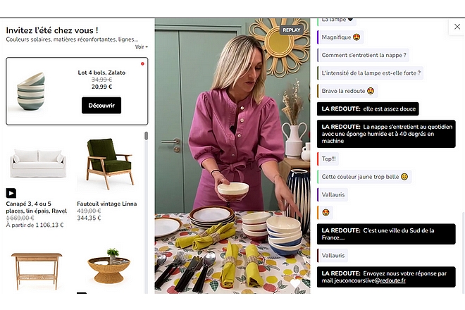 La Redoute a organisé 6 sessions de vente en streaming sur internet en 2021. Résultats ? On constate que les sessions de Live shopping – les shows – suscitent à la fois des ventes lors de leur diffusion en direct, puis lors de leur usage en replay. « En termes de vues et de conversions, ce n’est pas dans le live que tout se fait » prévient Marion Felez Le Jan de La Redoute. « En réalité, c’est le replay qui va représenter environ 80% des vues, des ajouts paniers. On va avoir une transformation sur du long terme » dit-elle.