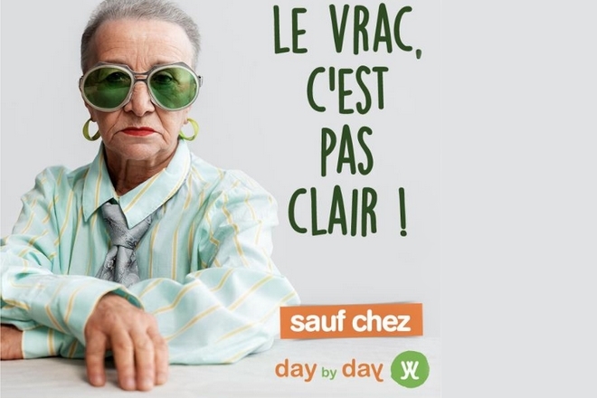 Les franchisés peuvent également créer leurs propres publications, « ce que, bien entendu, nous les encourageons à faire » ajoute-t-il. Les magasins day by day proposent des produits de la vie courante pour faire ses courses en vrac et en réemploi, afin de lutter contre le gaspillage alimentaire. Cela concerne pâtes, riz, légumes secs, fruits secs, confiserie, épices, céréales, biscuits, thé, café, droguerie, hygiène, etc.