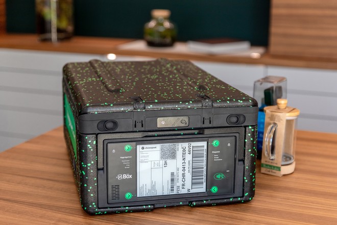 Un verrou mécano-électronique permet un déverrouillage de l’emballage uniquement par le destinataire du colis via une application dédiée. L’emballage dispose d’un mécanisme de calage qui s’adapte automatiquement aux produits pour les protéger pendant le transport. La capacité de contenance est portée à 32 litres. L’écran E Ink est de 7,8 pouces haute résolution.
