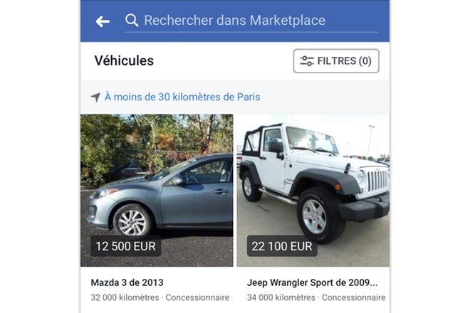 Il s’agit des annonces du groupe Argus, qui annonce 6000 clients parmi les concessionnaires et les marchands de véhicules d’occasion. A la clé, un gain de visibilité immédiat et sans surcoût pour les professionnels qui diffusent actuellement leurs petites annonces d’occasion sur les sites de l’Argus. Dès le 12 juin 2018, leurs véhicules seront systématiquement affichés sur l’onglet Marketplace de Facebook, lequel sera complété d’un moteur de recherches multicritères. Facebook revendique 34 millions d’utilisateurs de son réseau social en France.