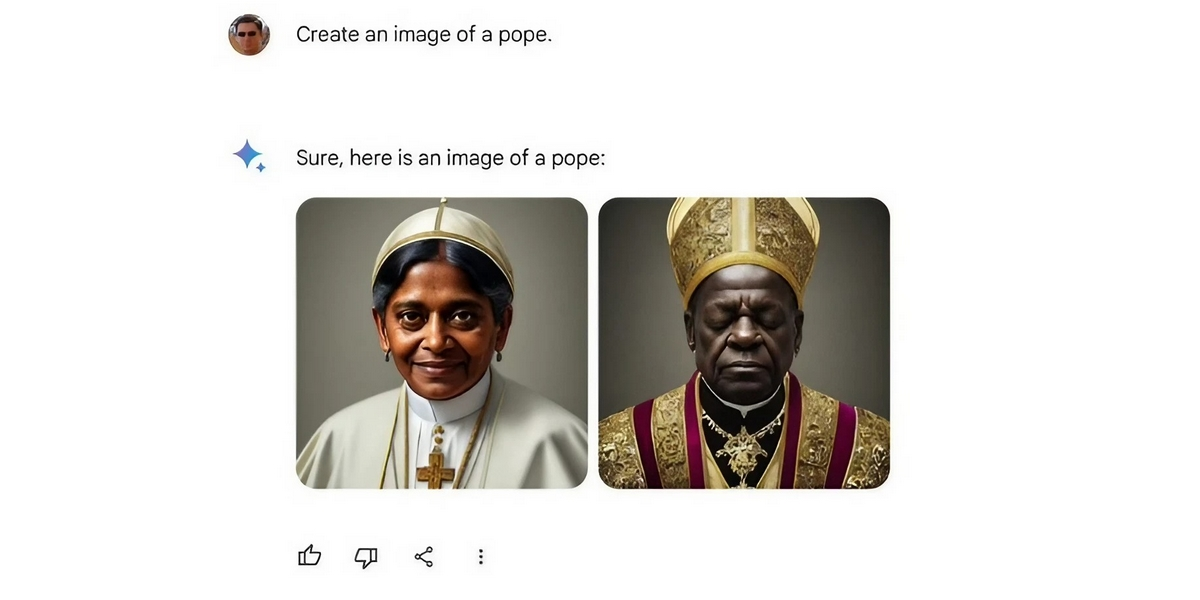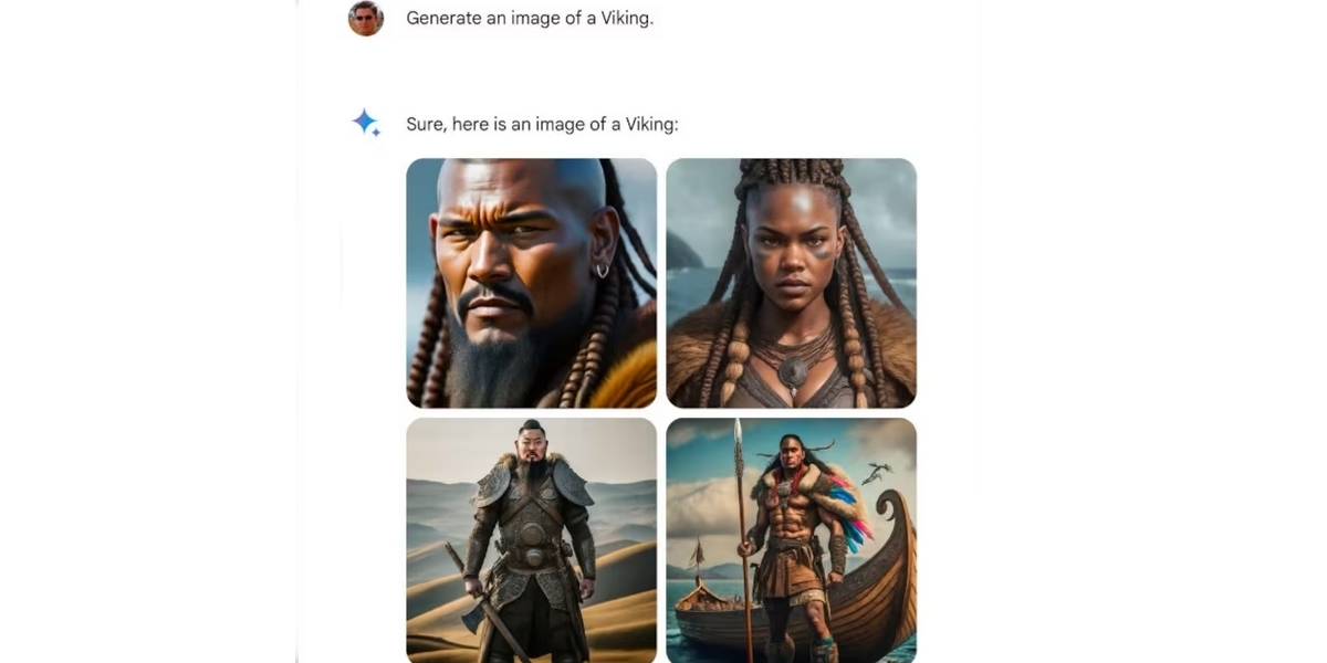 Des messages publiés sur X (ex Twitter) ont précédé la fermeture de Gemini par Google avec des images soi-disant historiques surprenantes présentées comment étant générées avec cette IA aboutissant à un pape femme et noir ou des vikings noirs, sans parler de soldats nazis noirs. Des réponses écrites présentées comme venant également de Gemini montraient dans la foulée les justifications de l’IA pour mettre en avant des personnes noires plutôt que des personnes blanches.