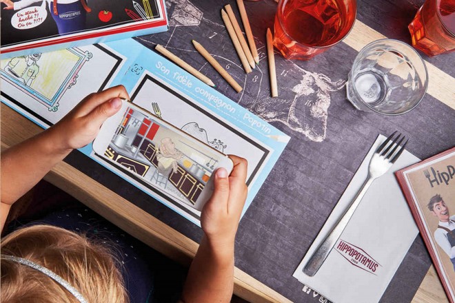 La chaîne Hippopotamus s’est engagée dans une profonde transformation depuis son rachat par le groupe Bertrand depuis plus d’un an. Parmi les nouveautés, on trouve une offre famille qui propose pour amuser les enfants à table des supports d’activité à double lecture physique et digitale. L’application repose sur la réalité augmentée.