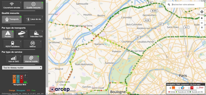 La couverture calculée à partir des informations des opérateurs et les mesures réalisées par l’Arcep sont affichables. L’Arcep annonce vouloir provoquer un choc de transparence afin de stimuler les opérateurs et doper la couverture mobile, afin que la concurrence ne porte non seulement sur les prix mais aussi sur les performances des réseaux. La performance en transmission de données 3G et 4G est moins valorisée bien que les mesures réalisées par l’Arcep soient présentées sur la carte.
