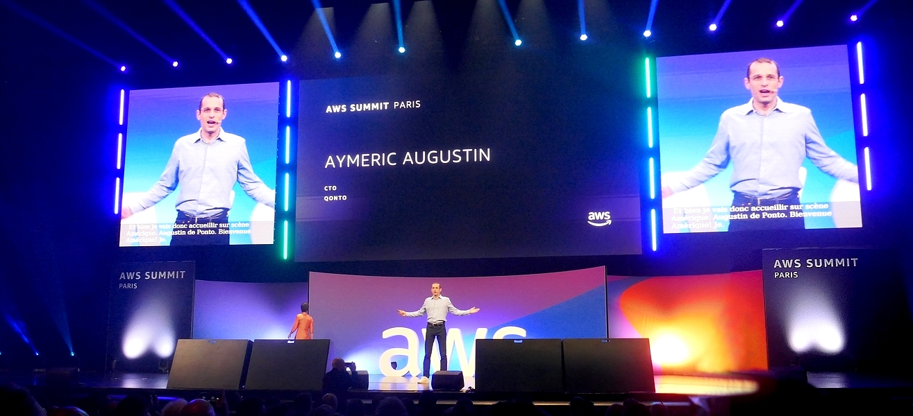 Les intervenants français étaient particulièrement dynamiques sur la grande scène de l’AWS Summit au Palais des Congrès à Paris, le 9 avril. Après l’intervention du DSI de l’industriel Safran, extrêmement volontaire, c’est le CTO (Chief Technology Officer) de Qonto qui a présenté de manière survoltée l’avenir des services bancaires et financiers sur la grande scène, devant au moins 3000 personnes de l’écosystème AWS.