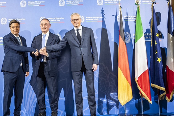 L’Italie, l’Allemagne et la France vont renforcer leur coopération dans le domaine de l’intelligence artificielle. Les ministres Adolfo Urso, ministre des Entreprises d’Italie, Bruno Le Maire, ministre de l’Economie, des Finances et Robert Habeck, ministre de l’Economie d’Allemagne, se sont rencontrés à Rome, le 30 octobre en présence d’industriels français, allemands et italiens.