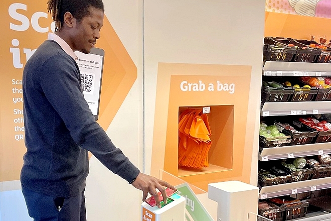 Les clients s’identifient en entrant dans le point de vente via un QR code sur leur app mobile SmartShop Pick & Go de Sainsbury’s et qui est liée à leur carte bancaire. Ils prennent les produits sans devoir les scanner et seront facturés automatiquement lorsqu’ils sortent du magasin et s’être de nouveau identifiés par leur QR Code.