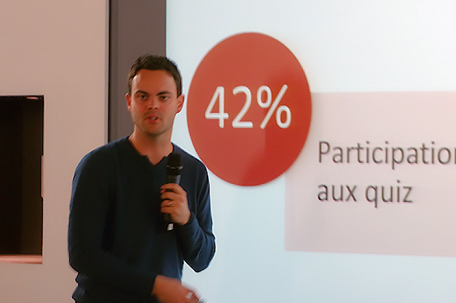 Ensuite « il faut poser peu de questions, voire pas de questions. » Si l’élève a visionné la vidéo, il l’aura suivie et comprise. Ou alors, « poser des questions très simples » auxquelles les élèves n’auront pas de soucis à répondre, ce qui leurs donnera envie de continuer. Et enfin, « il faut éviter de demander de réaliser des projets, cela demande de l’investissement et on perd de la rétention. » Si ces quatre éléments sont respectés, les chiffres s’élèveront vers 55 à 60% de rétention. « Bien entendu, la vraie astuce est de faire un cours passionnant » s’exclame Mathieu Nebra.