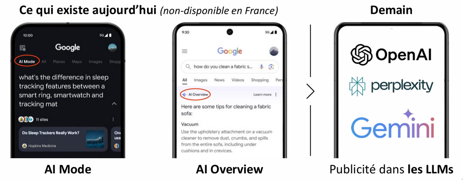 Pour les annonceurs, ces évolutions amènent de nouvelles façons d’interagir avec les consommateurs. Ils vont diversifier leurs achats publicitaires face aux différentes formes de Search, que ce soit Google Search, Gemini Search, Retail Search, le Search via ChatGPT d’OpenAI, etc.