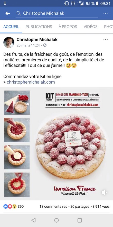 Christophe Michalak; élu champion du monde de pâtisserie en 2005, a lui aussi trouvé plusieurs solutions. Au-delà des livraisons proposées dans Paris, de ses nombreux livres et émissions ou encore de ses vidéos « mon truk en +» sur Youtube, le chef propose à la vente en ligne des kits de pâtisserie « tout prêts ».