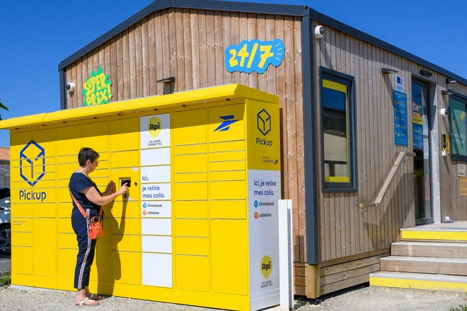 Photo : les supérettes Api et Pickup, filiale de La Poste, s’associent pour dynamiser les villages avec un nouveau service de retrait et dépôt de colis en consigne. D’ici la fin de 2024, une trentaine de consignes Pickup seront ainsi adossées aux supérettes en libre service Api, pour renforcer l’accessibilité des services de retrait et dépôt de colis au sein des villages.
