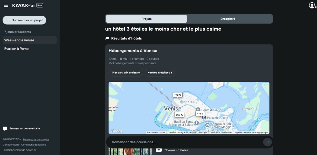Kayak.ai propose les informations tarifaires les plus récentes de 400 fournisseurs, dans un format orienté conversation, et fiable pour les voyageurs