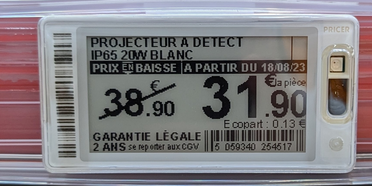 Le recours à des étiquettes électroniques doit permettre de garantir d’avoir toujours le bon prix. Pricer met en avant sa technologie de communication optique comme étant la moins énergivore du marché.