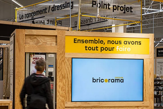 L’accueil du magasin est désormais un « point service » qui présente les services. Il s’agit du « click & collect », de la livraison à domicile, de la pose à domicile, des ateliers de bricolage, du coaching à domicile et de la location de véhicules. Un conseiller oriente le client selon son projet. Un espace « QG » propose aux clients un accompagnement personnalisé et omni-canal. On peut préparer un projet en 3D, disposer de conseils pour une consommation responsable, consulter des tables d’inspiration, des écrans de recherche, etc. Cela doit faciliter le parcours d’achat et le rendre efficace.