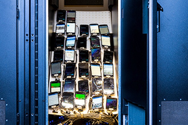 Les téléphones sont filmés pour que les ingénieurs puissent observer ce qui se passe sur les écrans à distance. Les téléphones ne devaient pas être trop près de l’émetteur Wifi, car un signal trop fort ne permet pas des performances optimales. Pour les tests, Facebook a également conçu un logiciel de gestion des modules à installer sur le serveur, baptisé Chef.