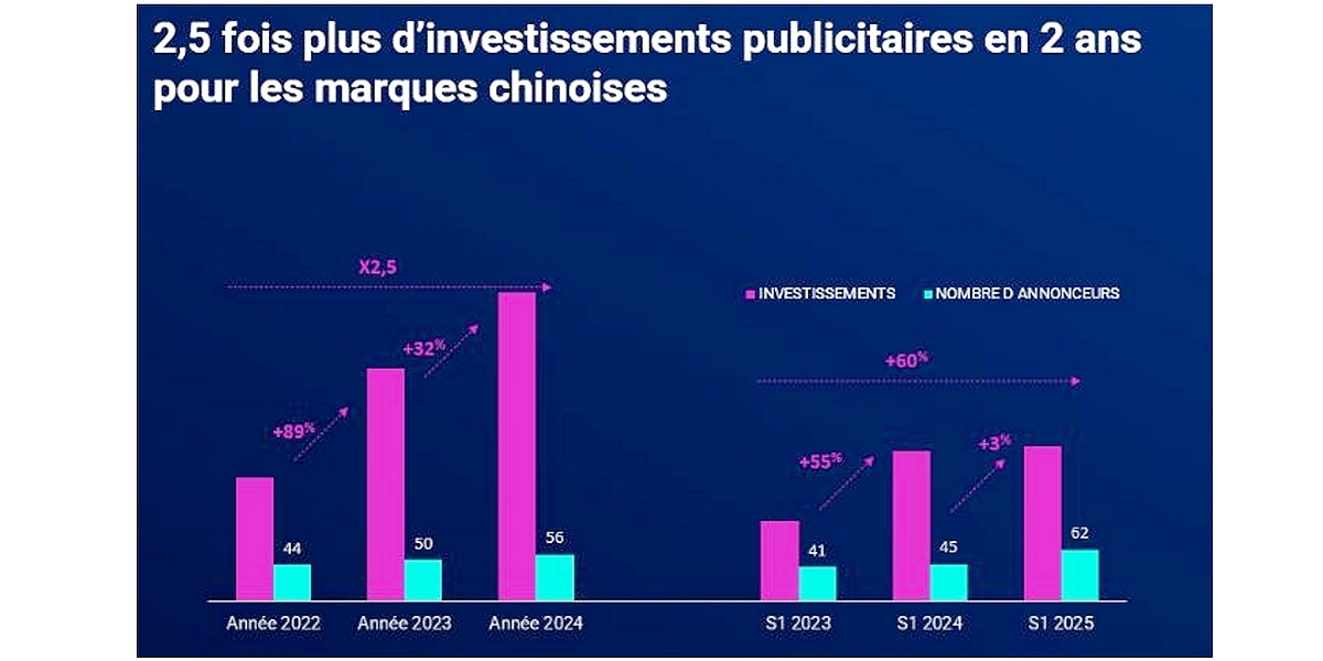 En seulement deux ans, les marques chinoises ont multiplié par 2,5 leurs budgets publicitaires en France. L’étude de Kantar recense 62 annonceurs actifs au 1er semestre 2025. Ils étaient 41 au 1er semestre 2023. Leur stratégie montre une diversification des canaux publicitaires, de fortes disparités selon les secteurs et le poids important de quelques leaders.