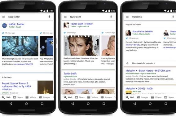Ainsi, si par exemple, on tape dans la barre de recherche de Google “Taylor Swift“, ses Tweets les plus récents apparaîtront, tout comme si l’on cherche “Mad Men“, les Tweets et les actualités les plus récentes concernant le dernier épisode. Une nouvelle façon de pousser les mobinautes à s’inscrire sur Twitter.
