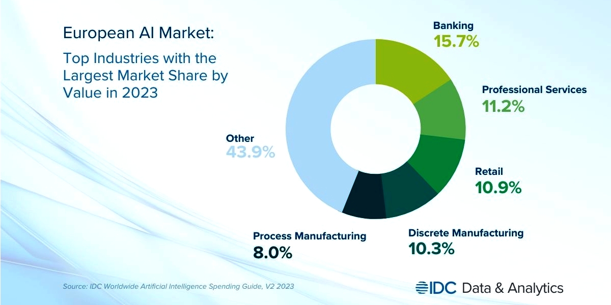 Les dépenses en intelligence artificielle (IA) en Europe atteindront 34,2 milliards de dollars en 2023 (32 milliards d’euros), soit 20,6 % du marché mondial de l’intelligence artificielle. C’est ce que montre l’étude du cabinet d’analystes IDC sur les dépenses mondiales en IA.