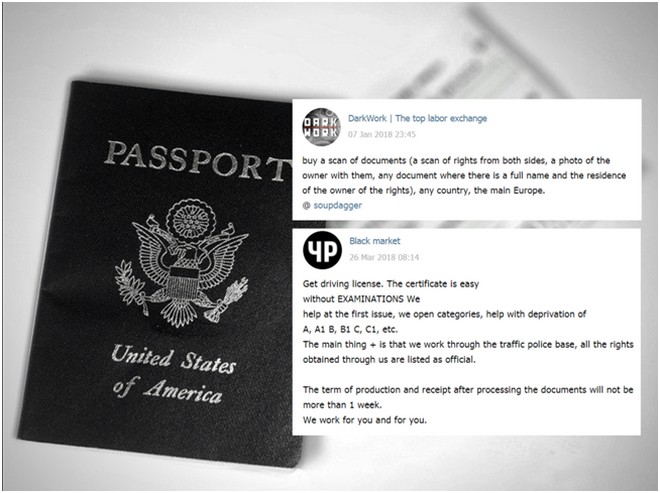 Les documents contrefaits comprennent des pièces d’identité, des passeports, des documents bancaires, etc. L’auteur de l’un des messages affirme même avoir des connexions à l’intérieur du département de la police de la circulation russe, et être en mesure d’émettre ou de mettre à jour des permis de conduire dans toutes les catégories.