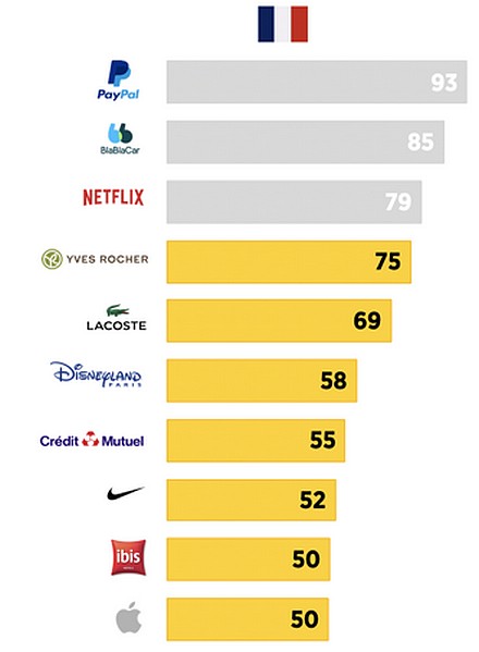 Ils détrônent Yves Rocher qui passe à la 4ème place alors qu’il était n°1 en 2018. Ce recul de l’enseigne de cosmétiques est notamment du aux mauvaises notes reçues sur le critère de récompense de la fidélité, explique l’étude. Ce classement a été mené par BETC en s’appuyant sur l’institut de sondage OpinionWay.