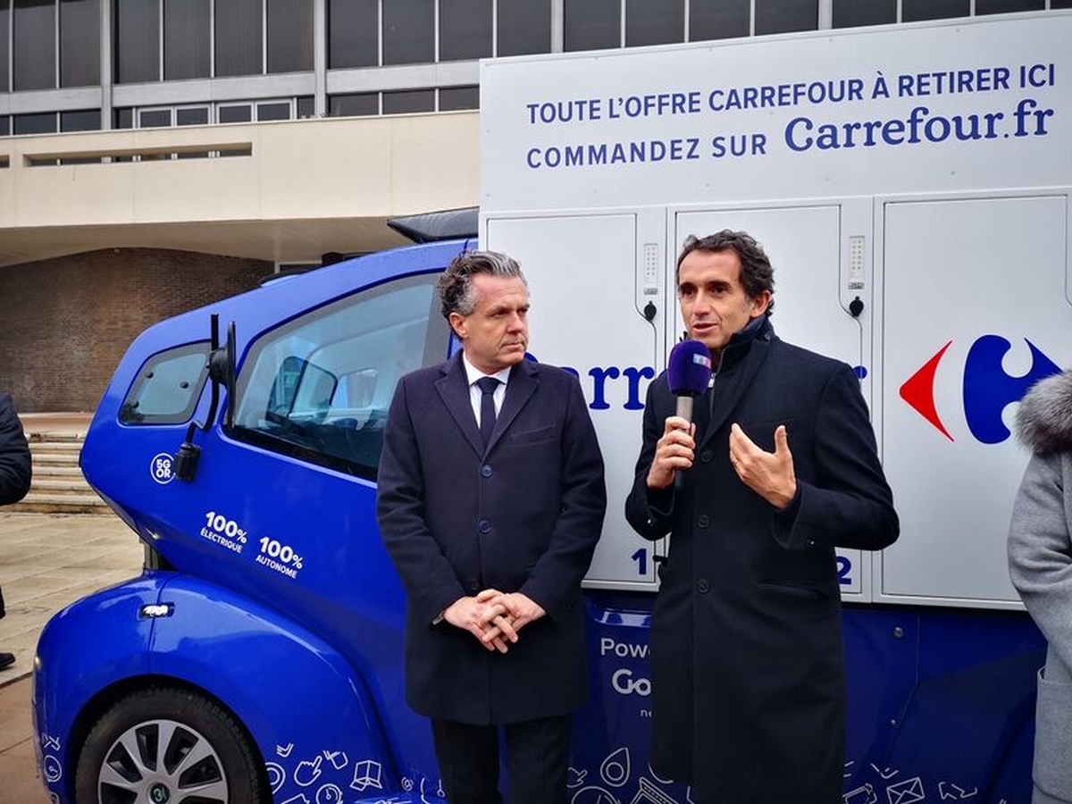 Carrefour a inauguré ce matin sa première navette de livraison autonome sur le plateau de Saclay. Alexandre Bompard, PDG de Carrefour, était présent aux côtés de Christophe Béchu, ministre de la Transition écologique et de la Cohésion des territoires de France. « C’est le premier véhicule électrique de livraison de courses autonome. Depuis notre magasin Market de Massy, il servira nos clients, notamment les étudiants, du plateau de Saclay » annonce le PDG.