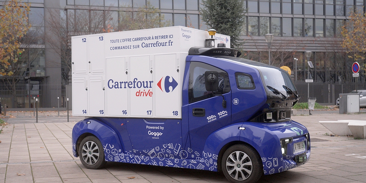 Carrefour et Goggo Network expérimentent un service baptisé « Drive Mobile » qui repose sur l’utilisation d’un véhicule de livraison entièrement autonome. Celui-ci circulera sur des routes publiques, à fort trafic et dans des conditions normales. Le trajet est de 15 km et la vitesse ira jusqu’à 70km/h.