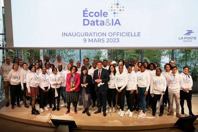 La Poste inaugure ce 9 mars 2023 sa première promotion de son École de la data et de l’intelligence artificielle. Elle est constituée de 51 candidates et candidats et atteint la parité. Cette école revendique des valeurs d’éthique et d’inclusion. Elle a pour vocation de former jusqu’à 250 candidats par an dans les 3 ans à venir dans quatre métiers clés, « data product owner », « data analyst », « data engineer » et « data scientist ». La création de cette école par La Poste veut répondre à la rareté des compétences dans ces métiers.
