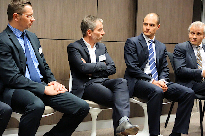 Photo, de gauche à droite, Anthony Hié, DOSI du Conseil général de la Moselle, Laurent Rousset, DOSI de Celio, Romain Lacombe d’Etalab et Fabrice Benaut, DSI & CIL de GFK.