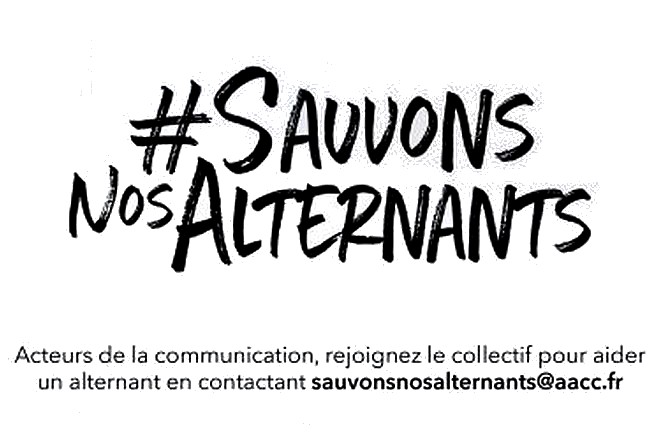 50 agences de communication lancent l’opération #SauvonsNosAlternants pour venir en aide aux élèves en recherche d’alternance selon le mode SFP (Stagiaire de la Formation Professionnelle). Parmi elles : Australie.GAD, Babel, Steve, BETC, Publicis Groupe, Ogilvy Paris, Extreme et Havas Paris.