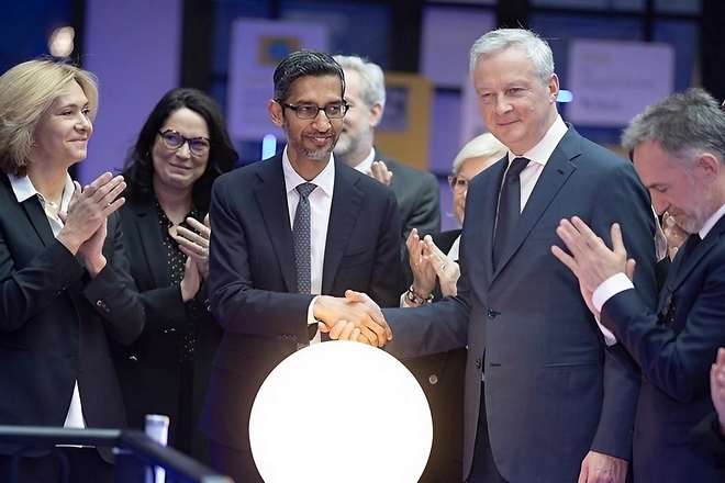 Pour l’occasion, Sundar Pichai a été reçu à l’Elysée par Emmanuel Macron. Le Président de la République a “rappelé sa vision en matière d’intelligence artificielle, où l’innovation doit permettre de faire avancer nos économies et contribuer au bien commun, dans un cadre protecteur des droits des citoyens“. Le dirigeant de Google a également rencontré le Premier Ministre, Gabriel Attal. Le Premier Ministre décrit l’échange comme une « conversation fructueuse et captivante avec Sundar Pichai » qui a porté sur les opportunités de l’IA pour la politique, l’éducation, l’économie et sur l’ambition de son entreprise d’investir et de parier sur la France.