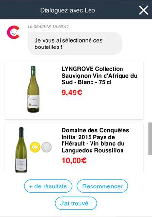 Le chatbot fonctionnant en mode texte ou en vocal est accessible sur le site de Cdiscount ou via Google Assistant et Google Home. Pour l’invoquer via Google Assistant et Google Home, il faut dire « Parler avec Cdiscount ». Ensuite, le consommateur se laisse guide par Léo, le sommelier virtuel, qui cherchera le vin correspondant le mieux à la demande.