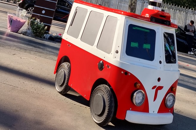 Le véhicule autonome Milla Van, de la société ISFM, effectuera un parcours de 2,2 kilomètres entre les 3 gares