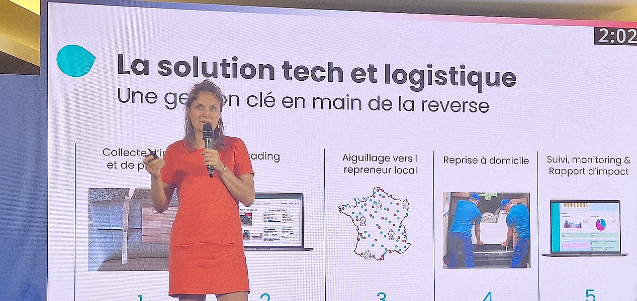 La jeune dirigeante Olympe Chabert, de SmartBack détaille de manière extrêmement professionnelle, convaincante et avec une forte implication la patiente et ingénieuse mise en place de ce réseau de revente et de revalorisation ainsi constitué. Elle emporte les suffrages du Jury et du public, le 3 juillet.