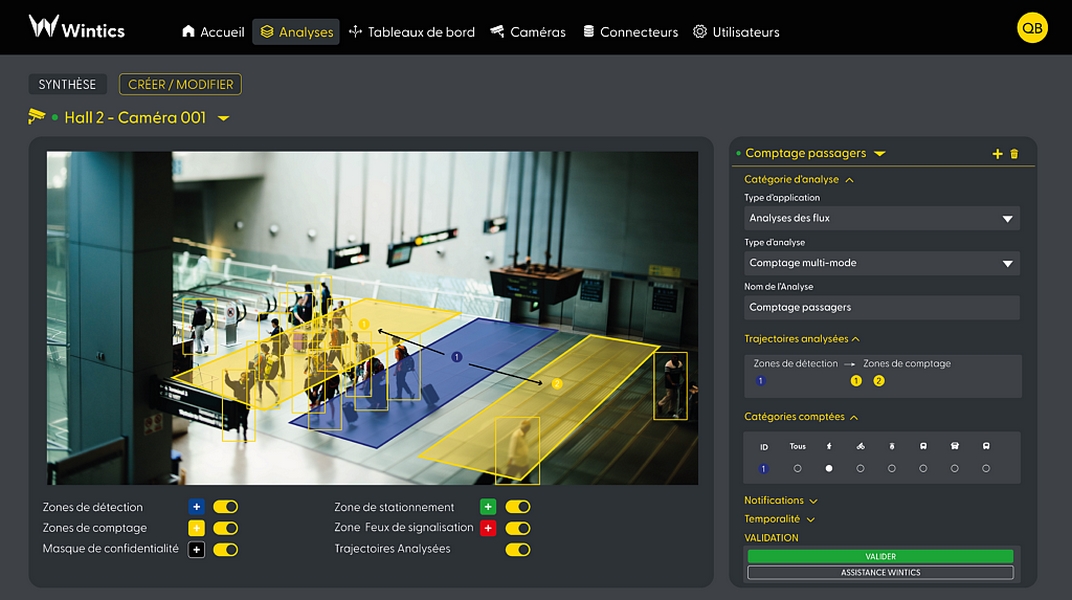 L’objectif est de détecter une intrusion en zone interdite au public ou sensible ainsi qu’un mouvement de foule dans des zones à risques. De même, l’application doit détecter une densité de personnes anormalement élevée et la présence d’un bagage abandonné.