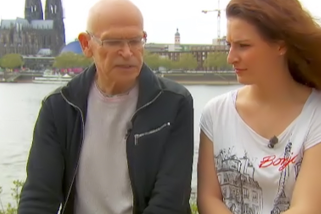 Photo, la journaliste Caro Lobig avec Günther Wallraff à l’occasion de la réalisation de son reportage.